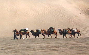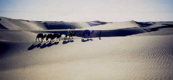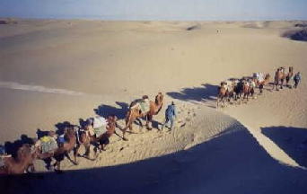 <シルクロードの砂漠古道をキャラバンしながらラクダとともに歩く>