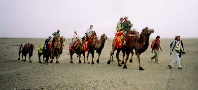 ラクダさんが水を飲む テント地風景 朝の出発準備体操 烽火台で記念撮影